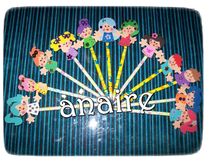Broches 4 euros unidad, dulceros 3 euros unidad y lápices 2 euros unidad.